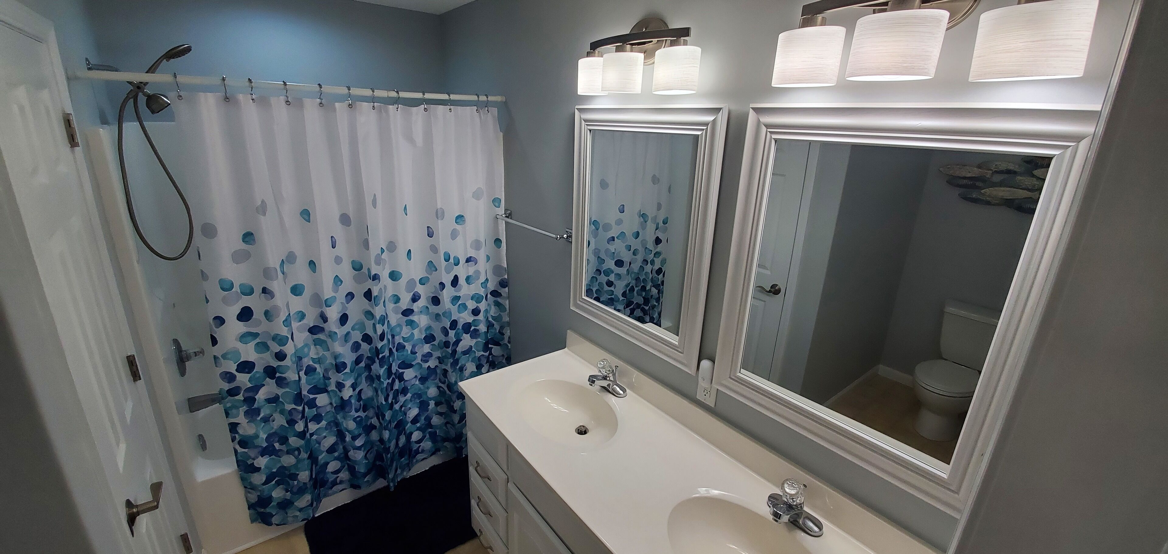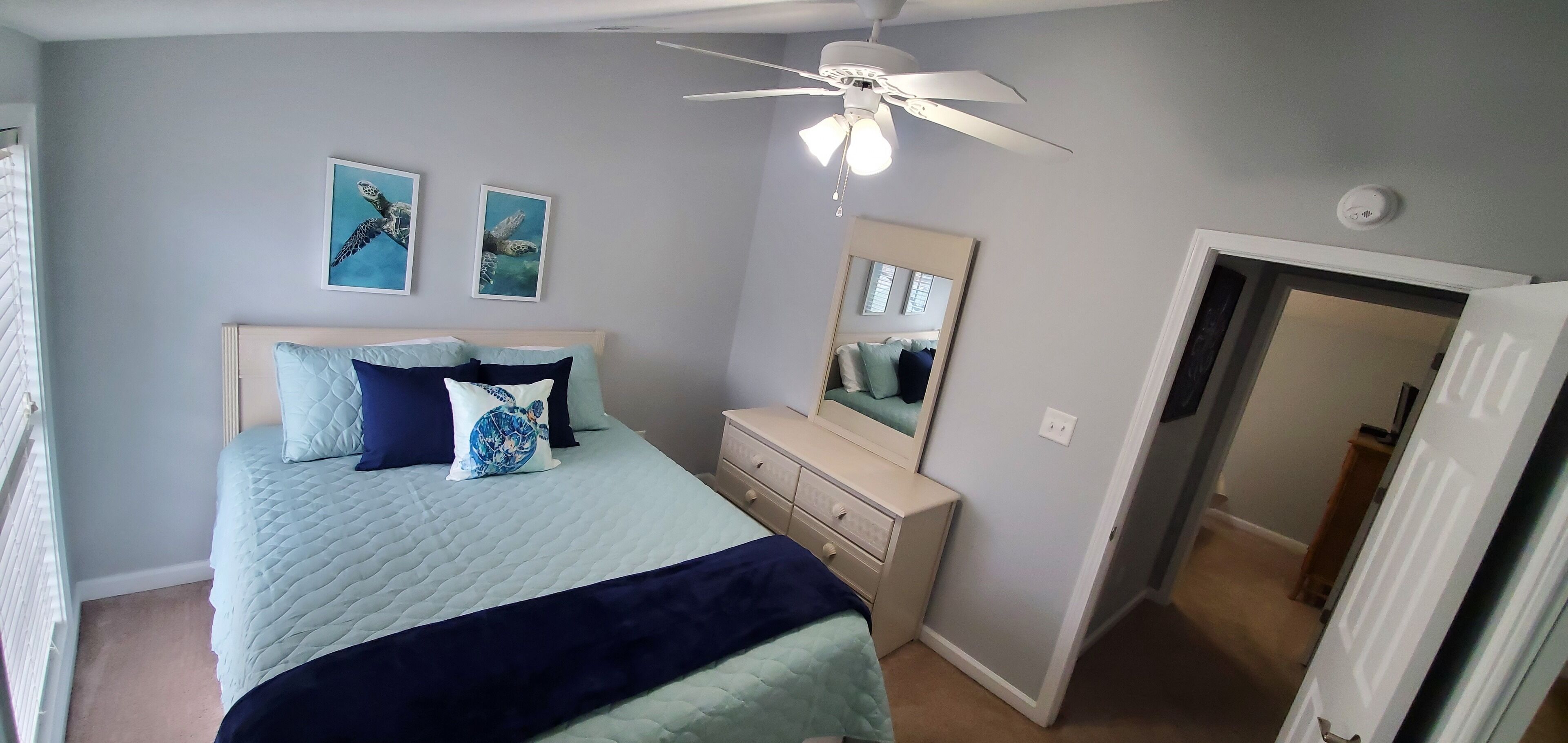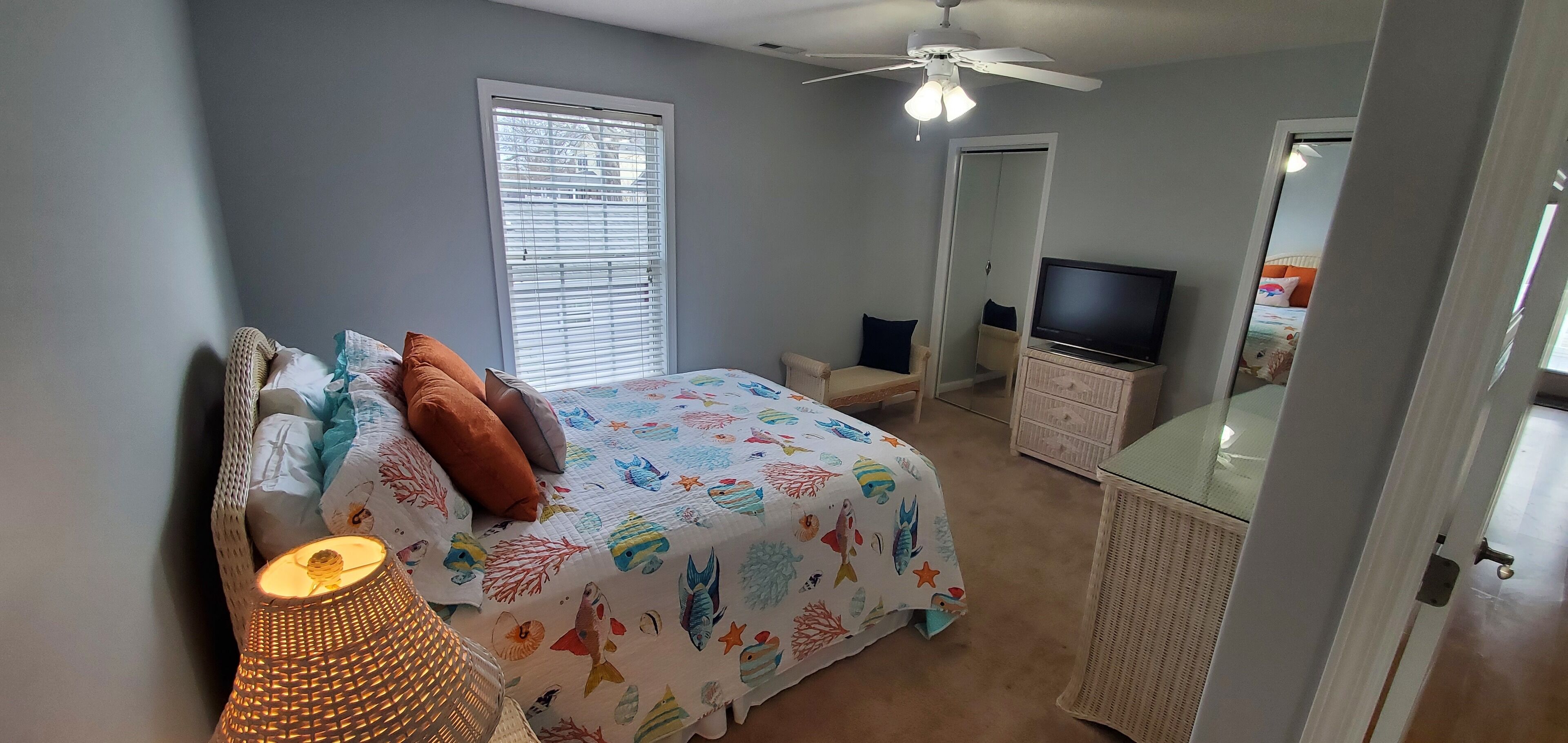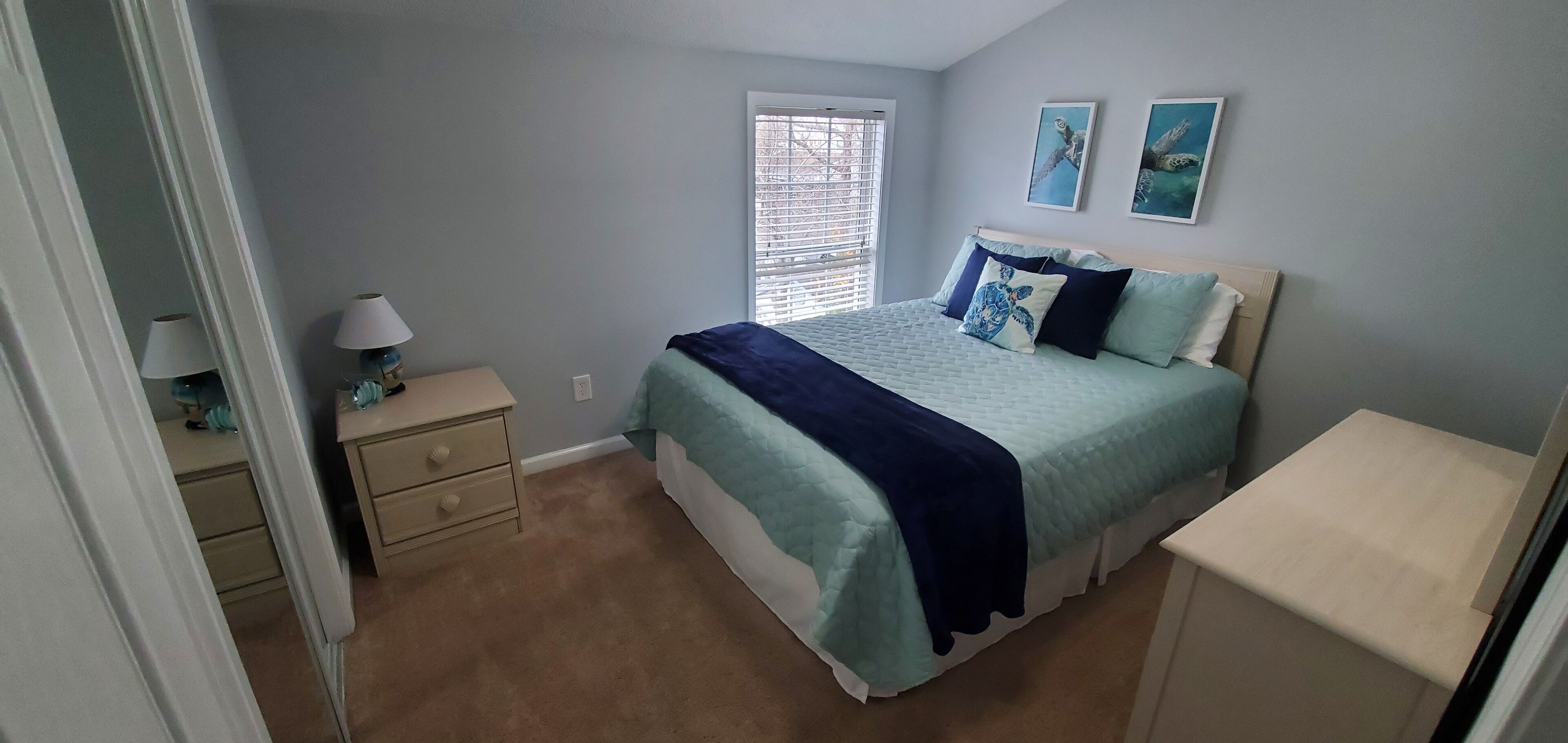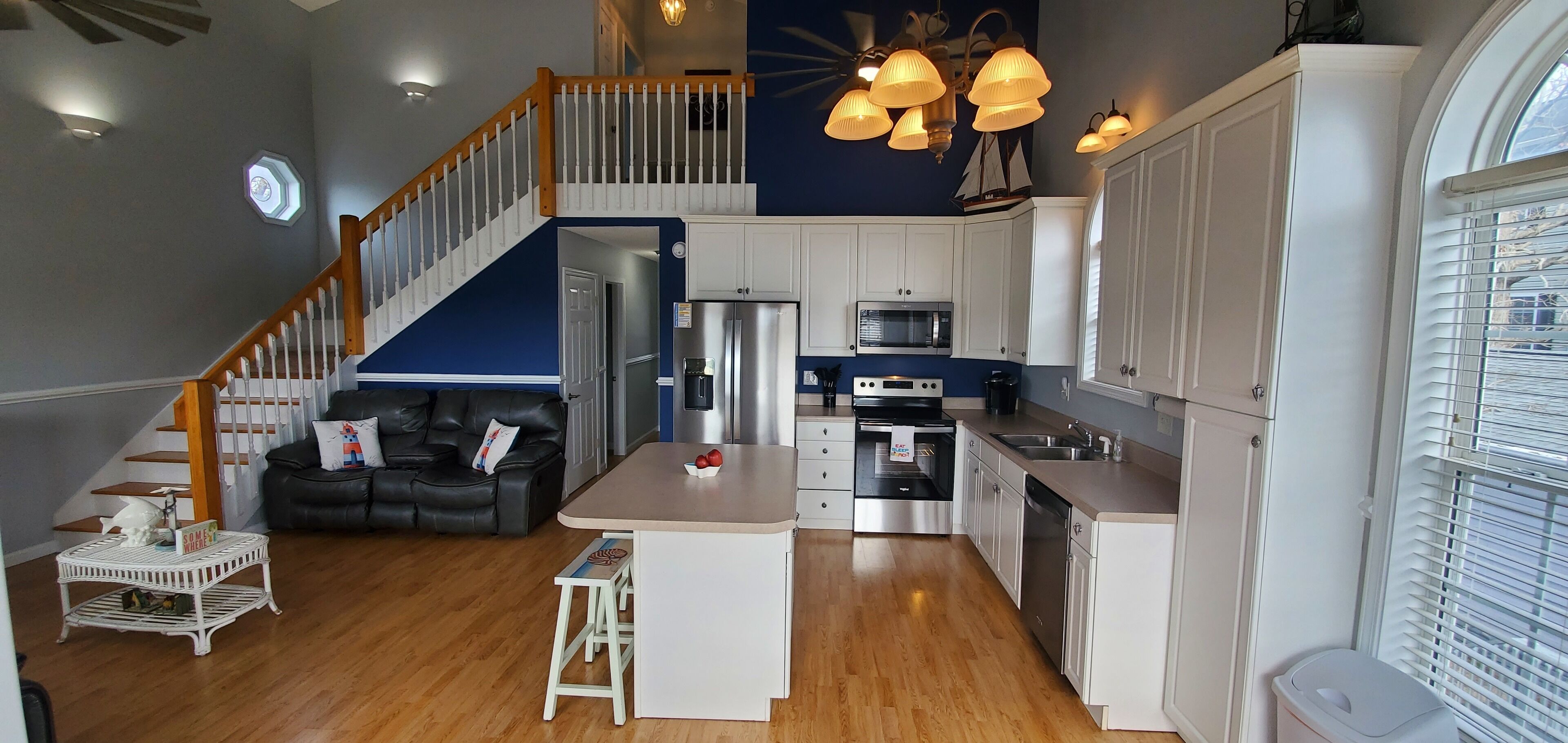 While indoors you will enjoy a fully furnished open kitchen/living room area with lots of natural light. Three bedrooms with queen bed in each. Washer/dryer combo for your use. Extended cable and Wi-Fi are included. Outside features a large deck, enclosed shower with hot and cold water. We also provide bicycles, beach chairs, and sand toys for the kiddos.